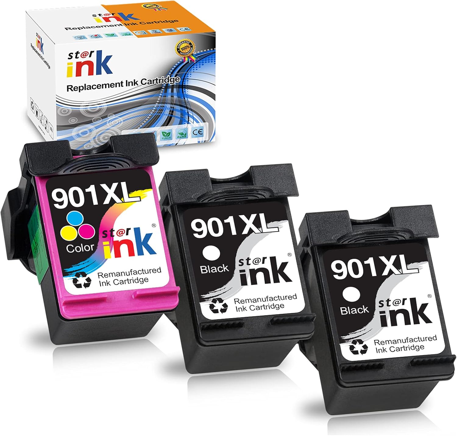 Starink Remanufactured Ink Cartridge Replacement for HP 901 XL 901XL Work with Officejet 4500 J4500 J4540 J4550 J4580 J4680 J4660 J4525 J4535 J4585 J4680c Printer(2 Black,1 Tricolor) 3 Packs